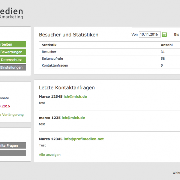 Alle Preise zzgl. 19% Mehrwertsteuer. Abrechnung und Zahlung jeweils für 1 Jahr im Voraus. Alle Angebote richten sich ausschließlich an Unternehmer im Sinne des §14 BGB. Die initial einzupflegenden Inhalte (Bilder, Texte und ggf. Downloads) müssen spätestens 14 Tage nach Buchung bereitgestellt worden sein.