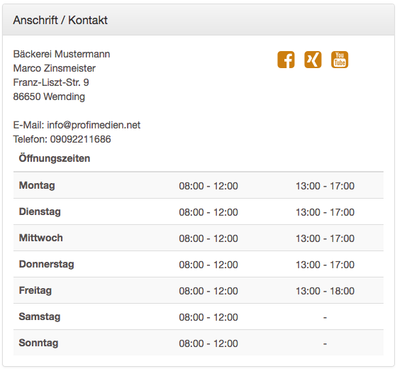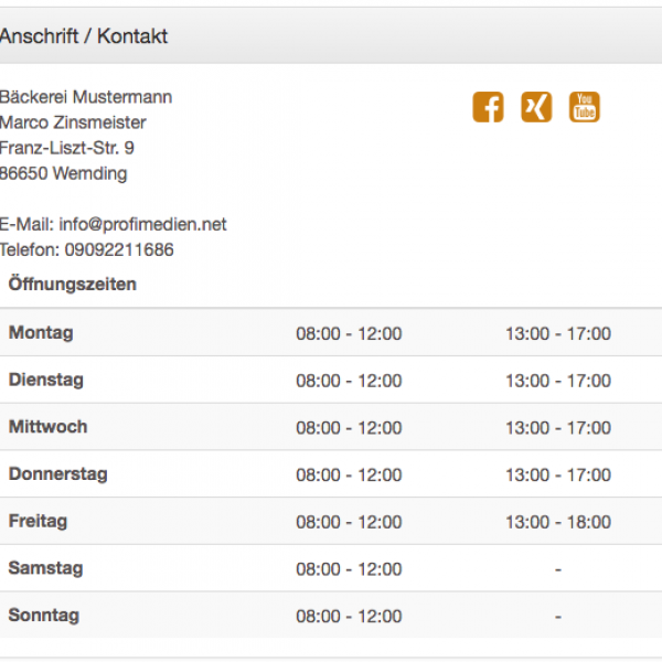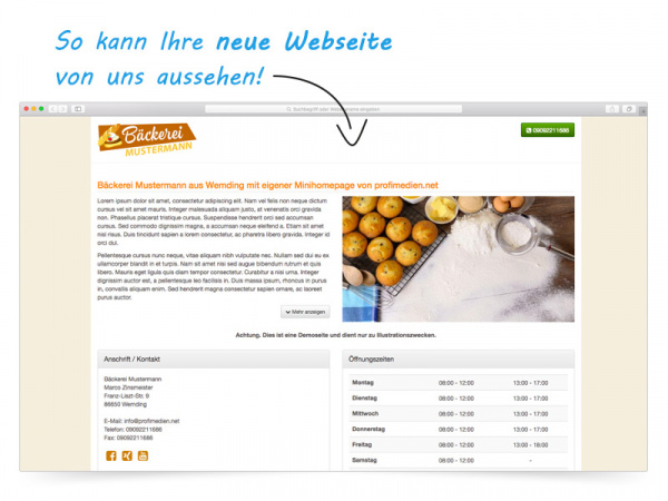 Hier haben wir eine Beispielseite der "Bäckerei Mustermann" für Sie vorbereitet:
